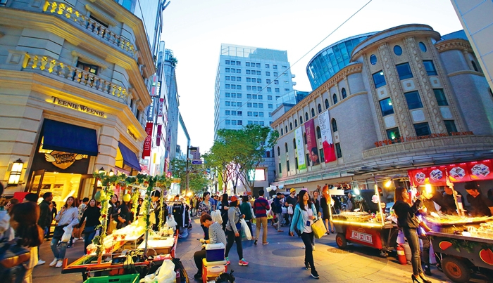 ถือเป็นย่านช้อปปิ้งที่สำคัญของกรุงโซล มีลักษณะคล้ายสยามแควร์ของไทย มีสินค้าแฟชั่น เครื่องสำอางและสตรีทฟู้ดที่หลากหลาย